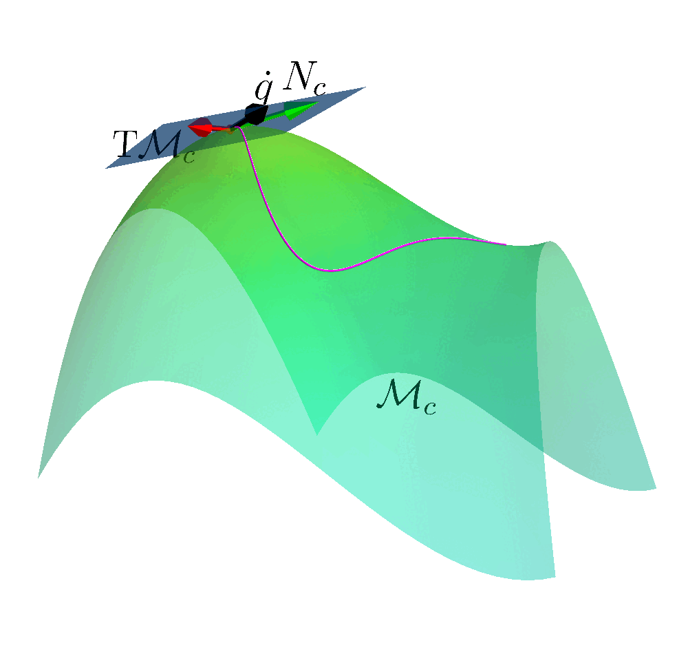 $$\mathrm{T}_{(q, x,\mu)}\MM_c = \left\{ (\dot{\vq}, \dot{\vx}, \dot{\vmu}) \left| \dot{c}(\vq,\vx,\vmu)= \mJ_q \dot{\vq} + \mJ_x \dot{\vx} + \mJ_{\mu}\dot{\vmu} = \vzero \right. \right\}$$