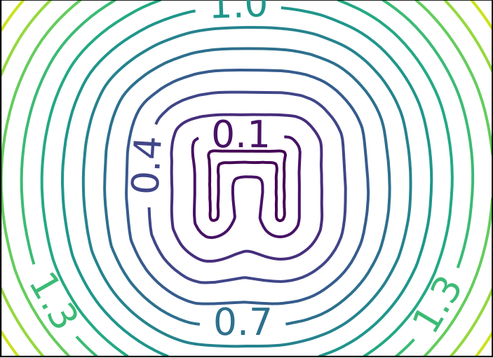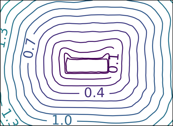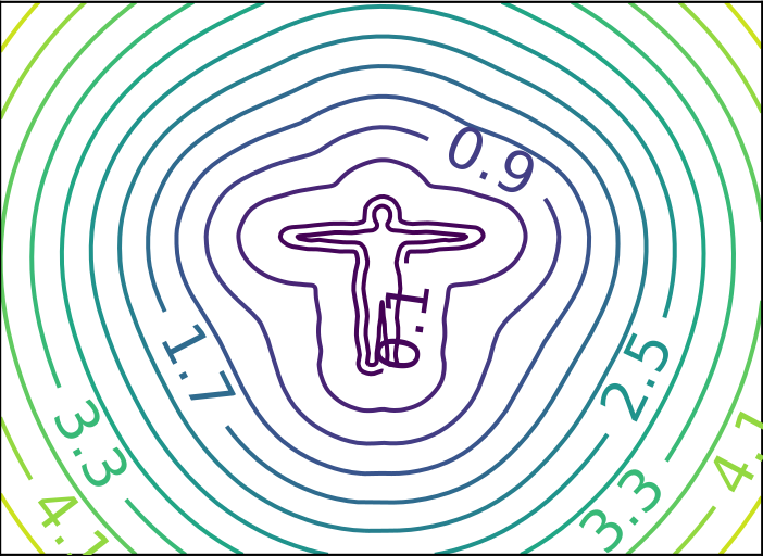 $$ d_{\vtheta}(\vx, \textcolor{DarkSalmon}{\vq}) = \left[1-\sigma_{\vtheta}(\vx, \textcolor{DarkSalmon}{\vq})\right]\textcolor{LightGreen}{\underbrace{f_{\vtheta}(\vx, \vq)}_{\mathrm{NN}}} + \sigma_{\vtheta}(\vx, \textcolor{DarkSalmon}{\vq})\textcolor{skyblue}{\underbrace{\lVert \vx - \vx_c \rVert_2}_{\mathrm{Point\,Dist.}}}$$
