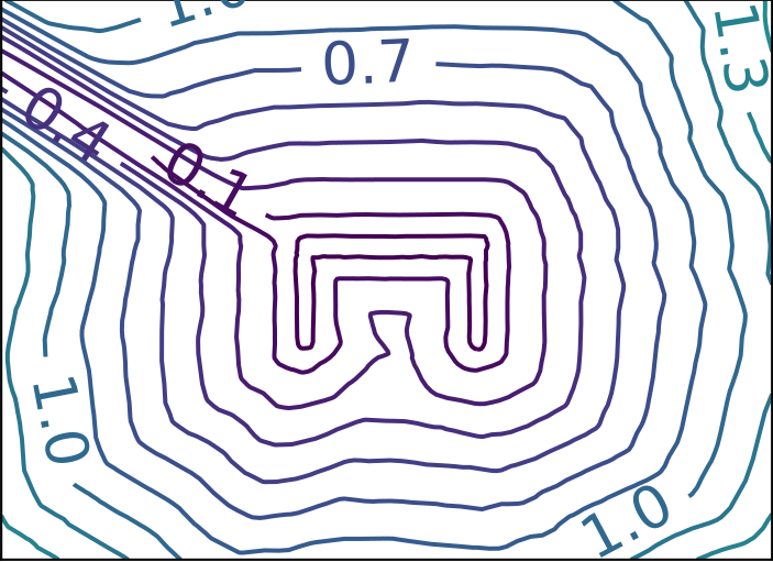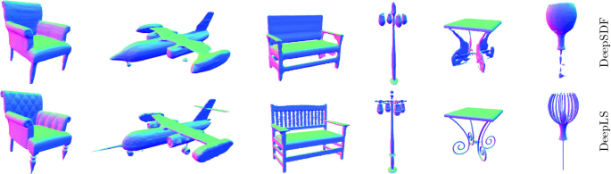 $$ \mathcal{L} = \sum \left[ \Vert d_{q,x} - d_{\theta}(q, x) \Vert^2 + \Vert \mathrm{null}(\nabla_{x}d_{\theta}(\vq, \vx)) \vn_{q, x} \Vert^2 + \Vert \nabla_{x}d_{\theta}(\vq, \vx) \mathrm{null}(\vn_{q, x}) \Vert^2 + \gamma \rho_{\theta}^2(\vq, \vx) \right] $$