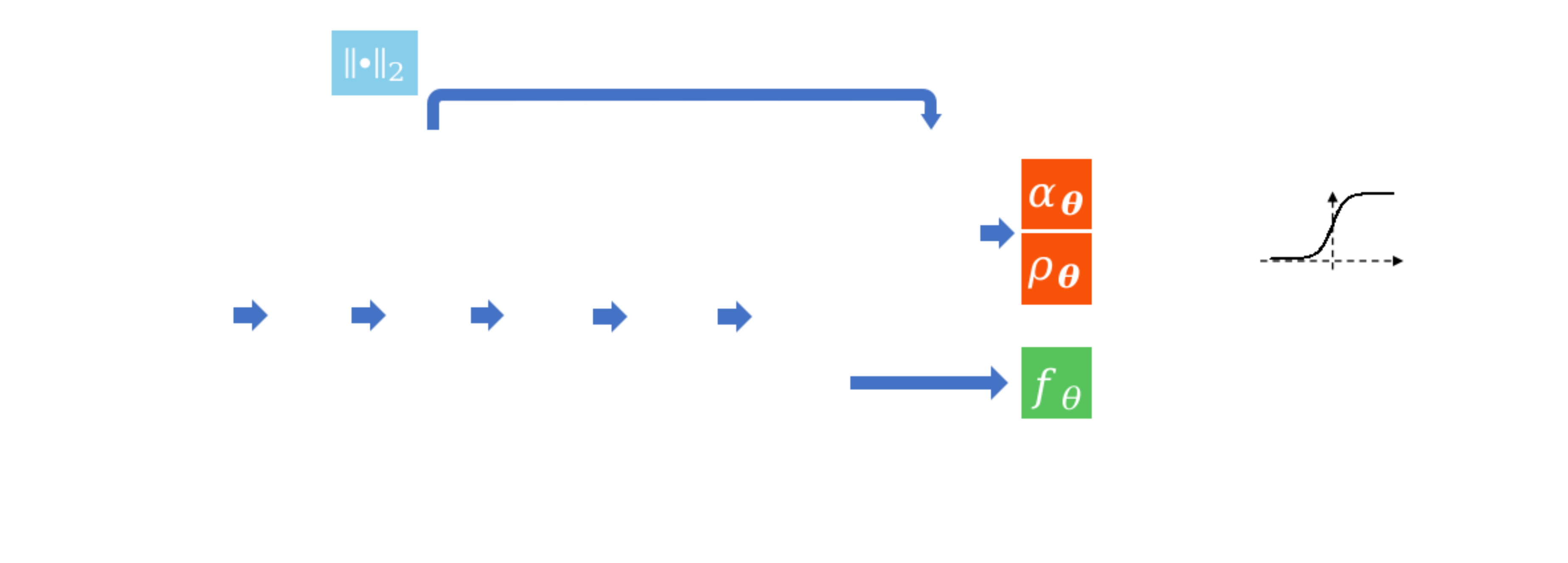 $ \sigma_{\vtheta}(\vx, \vq) = \sigmoid\left(\textcolor{OrangeRed}{\alpha_{\vtheta}}\left( \lVert\vx - \vx_c\rVert_2 - \textcolor{OrangeRed}{\rho_{\vtheta}} \right)\right) $